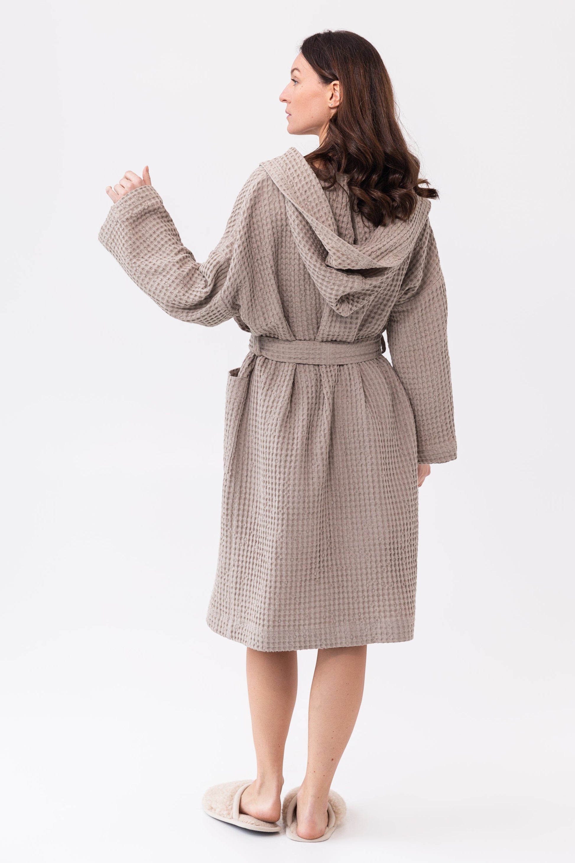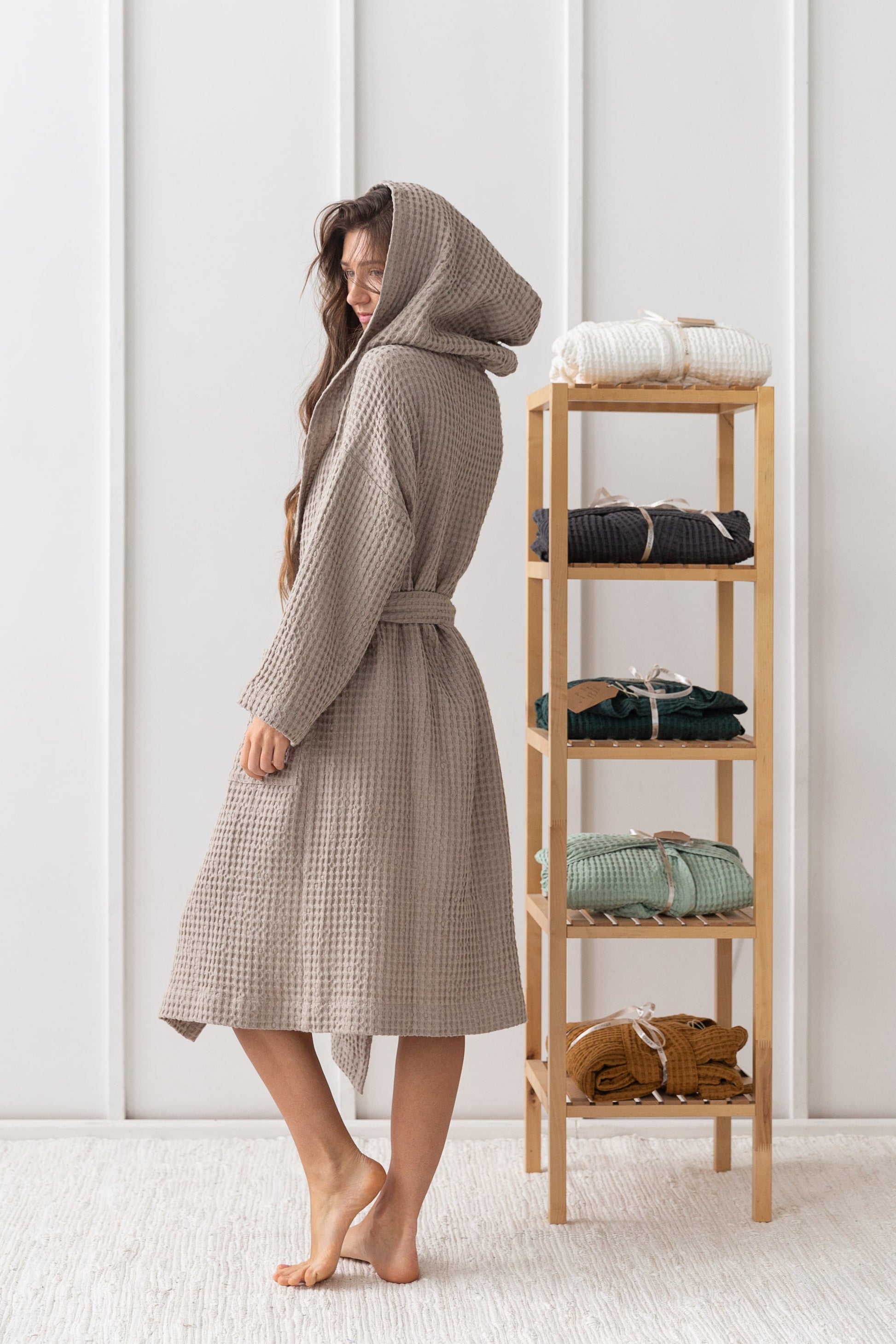 This waffle linen robe is made from high-quality European linen (54%) and cotton (46%) blends. Their soft and luxurious, puffy waffle structure will make your skin smooth and gentle with its perfect massage effect, as well as will give you an authentic look. A wide hoodie will make you feel comfortable and cozy. Linen fabric is highly absorbent and dries quickly, which makes it perfect for bath wear. It will look better and better with age and every wash.