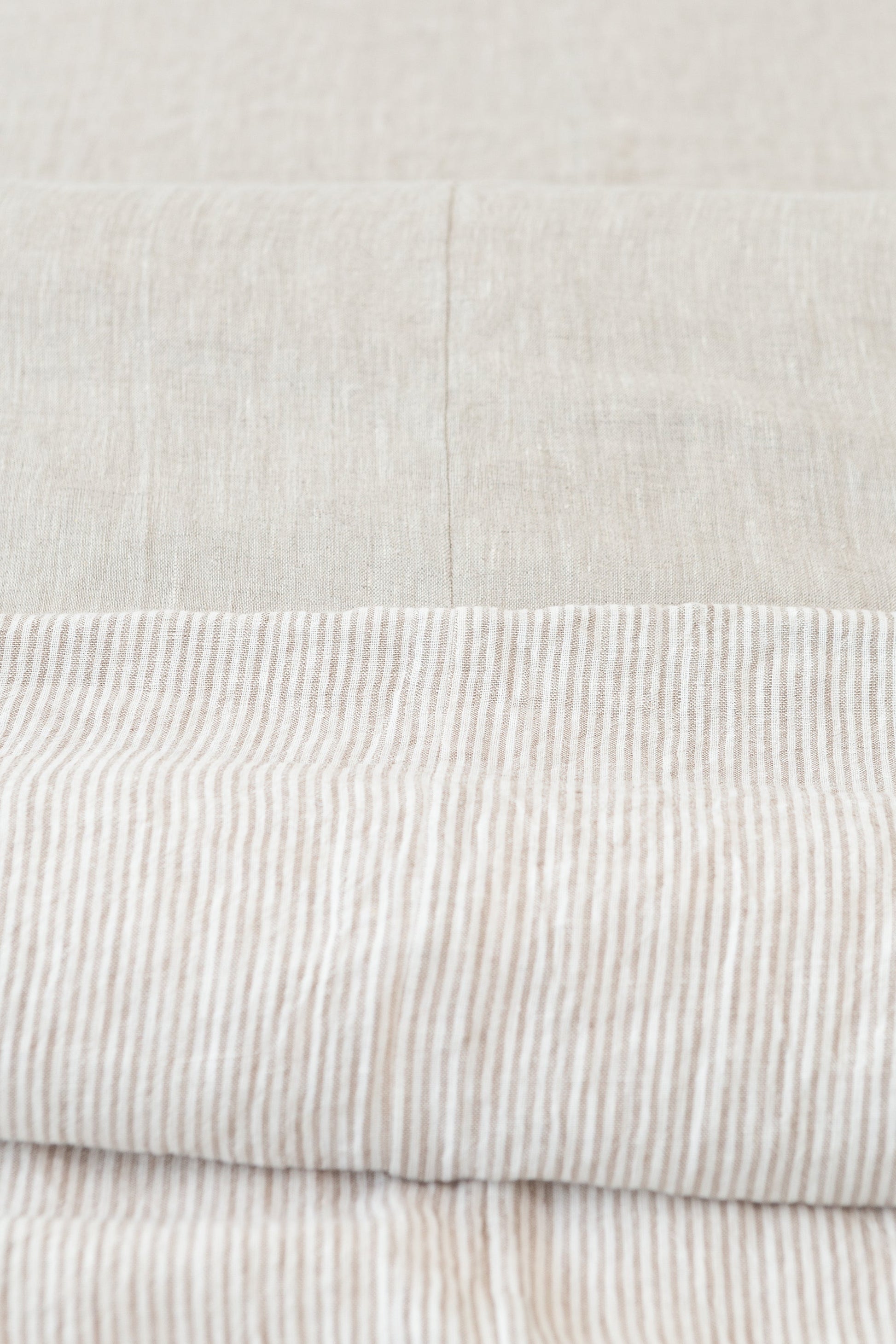 Natural Light and Striped Beige Double Sided Linen Bedding Set